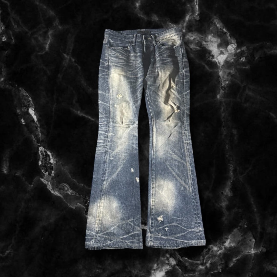 CIVARIZE Vintage Crack Bleached Flared Denim