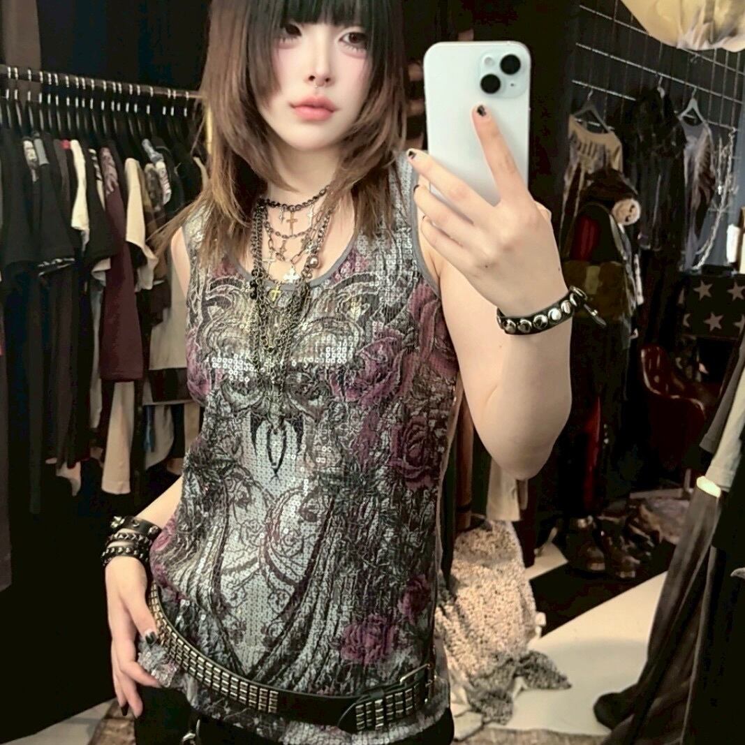 Gothic Rose Sequin Tank Top