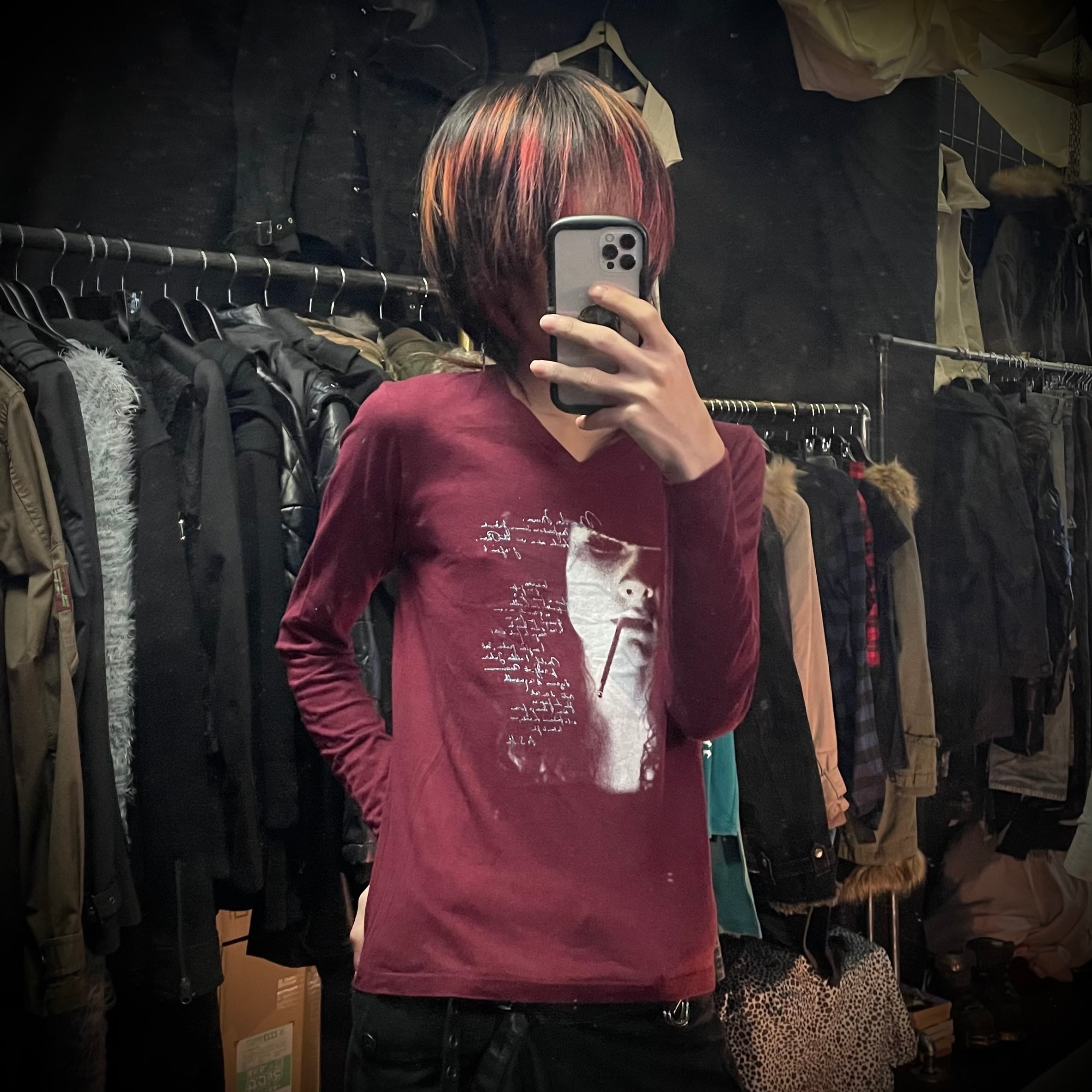 TAKEO KIKUCHI burgundy photo print long sleeve