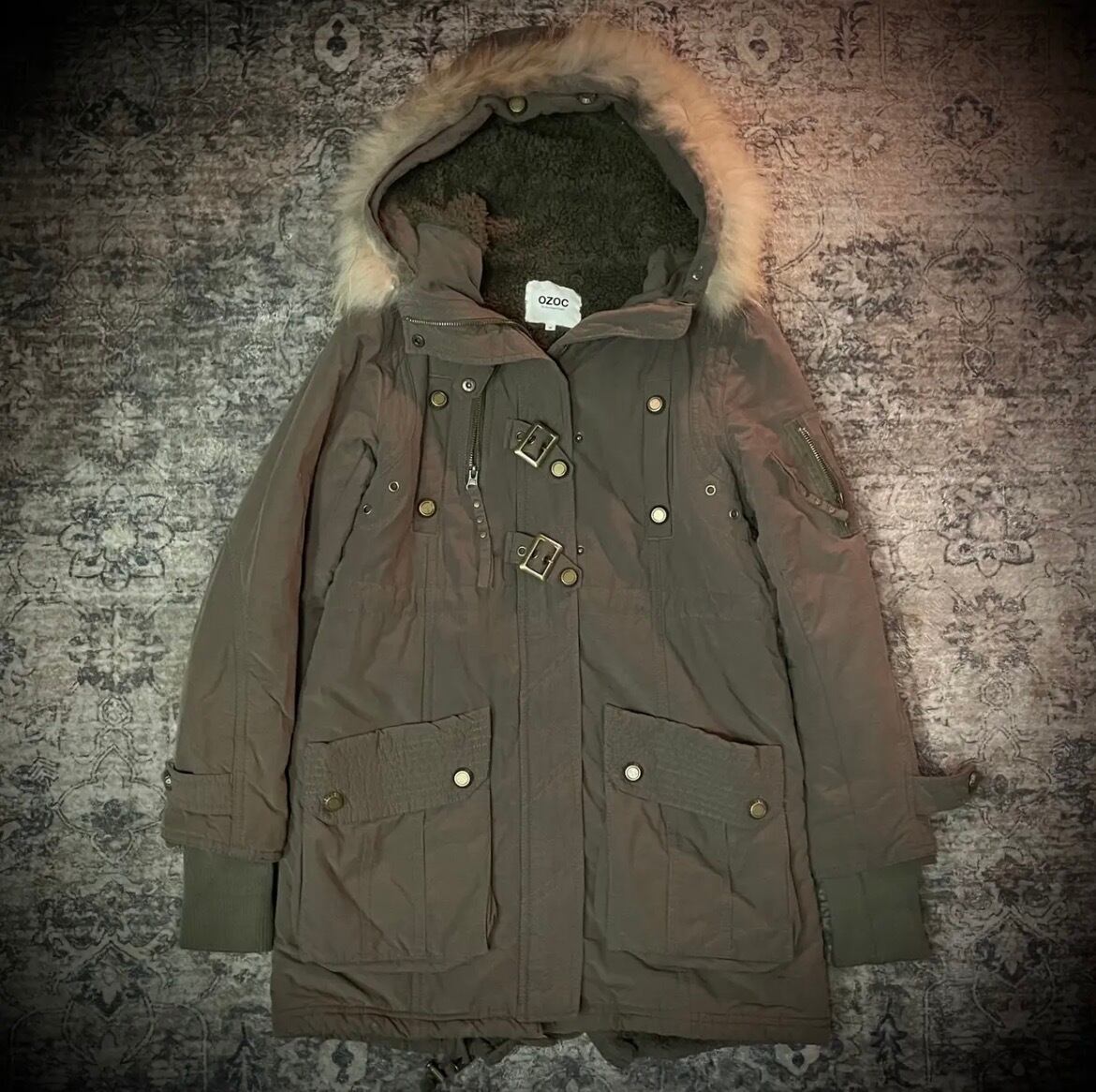 Fur Hood Military Down Jacket Olive