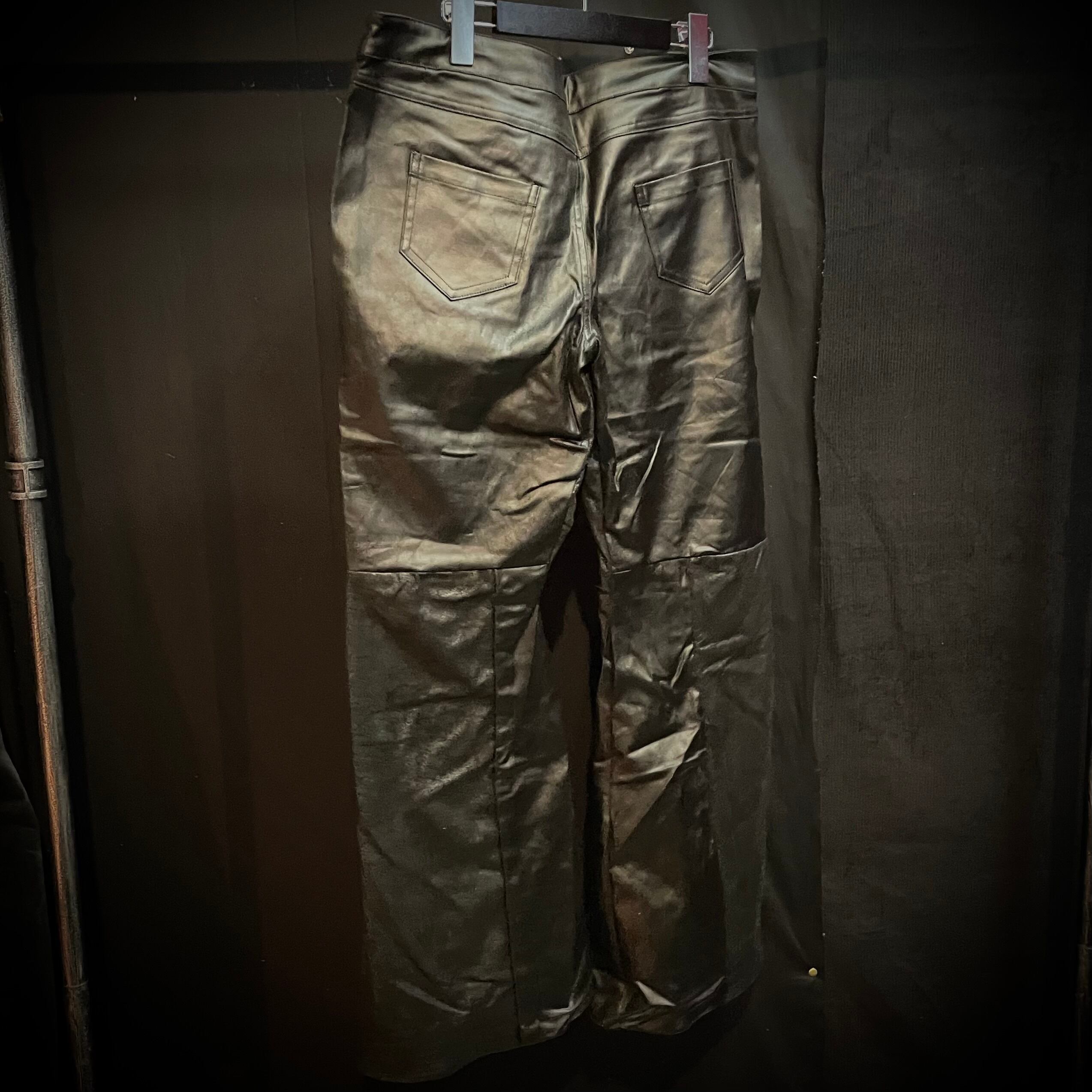 black faux leather zip pants