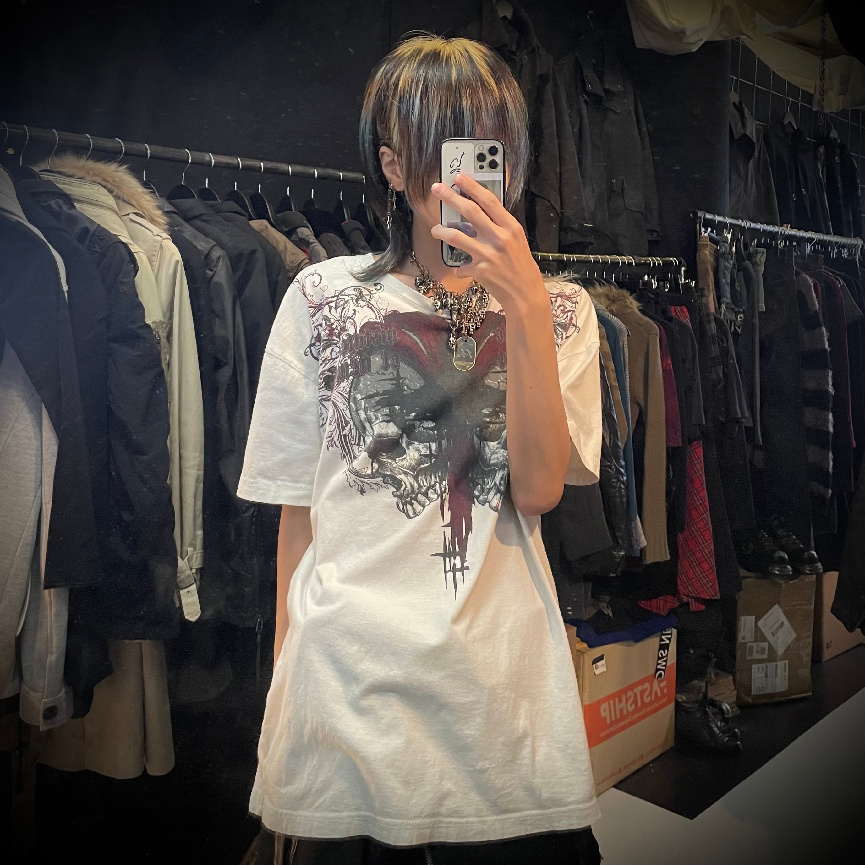 skull graphic t shirt white