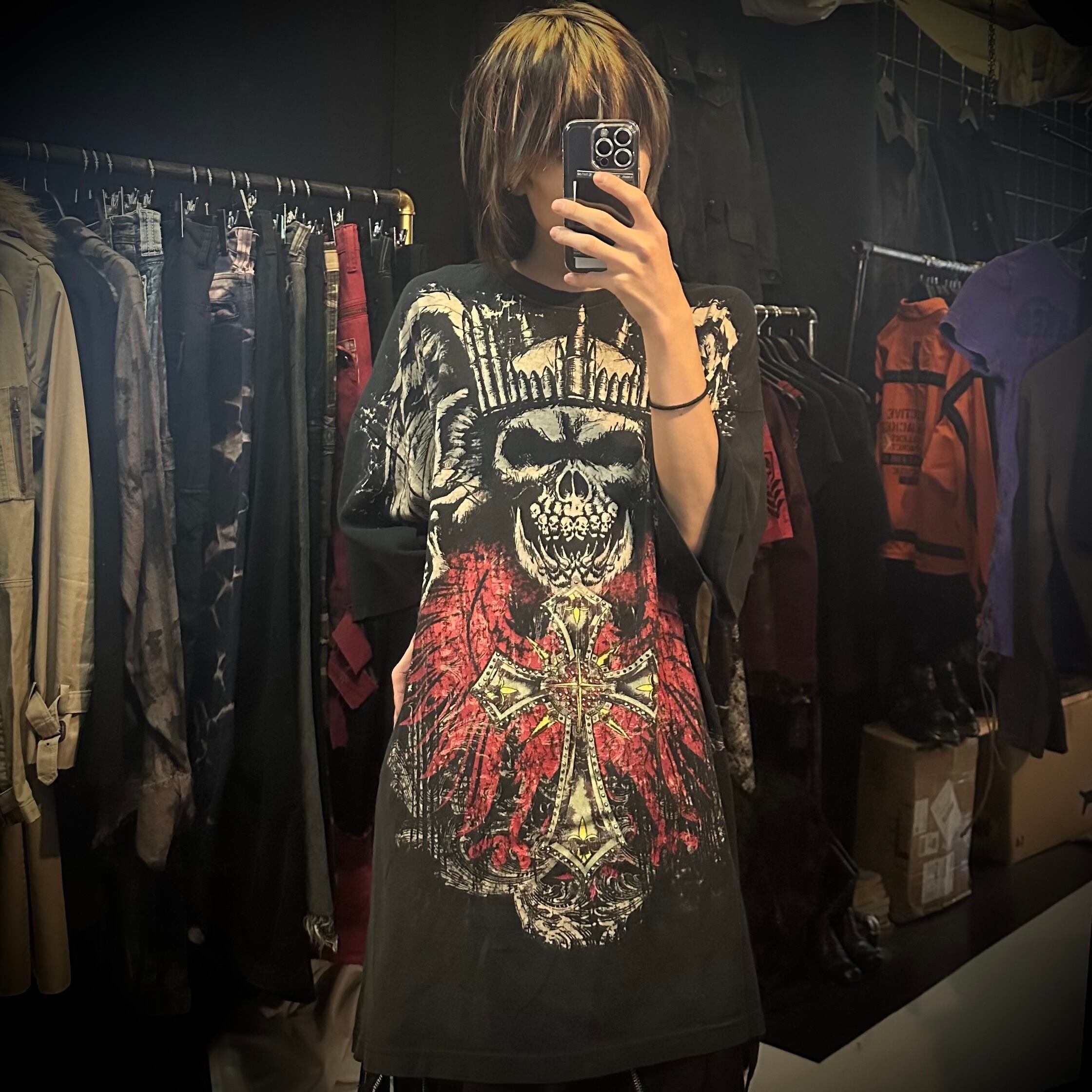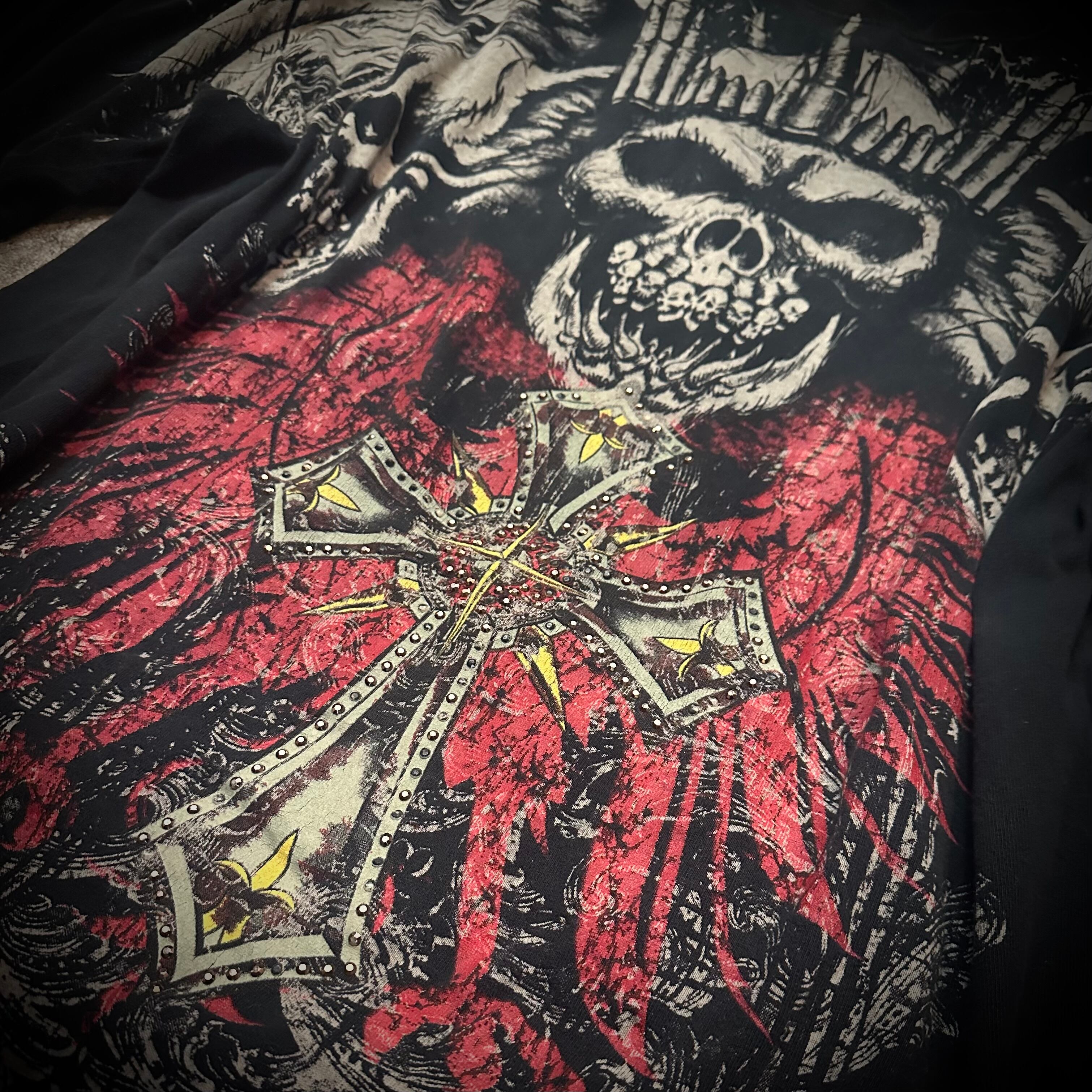 skull wing cross graphic t shirt